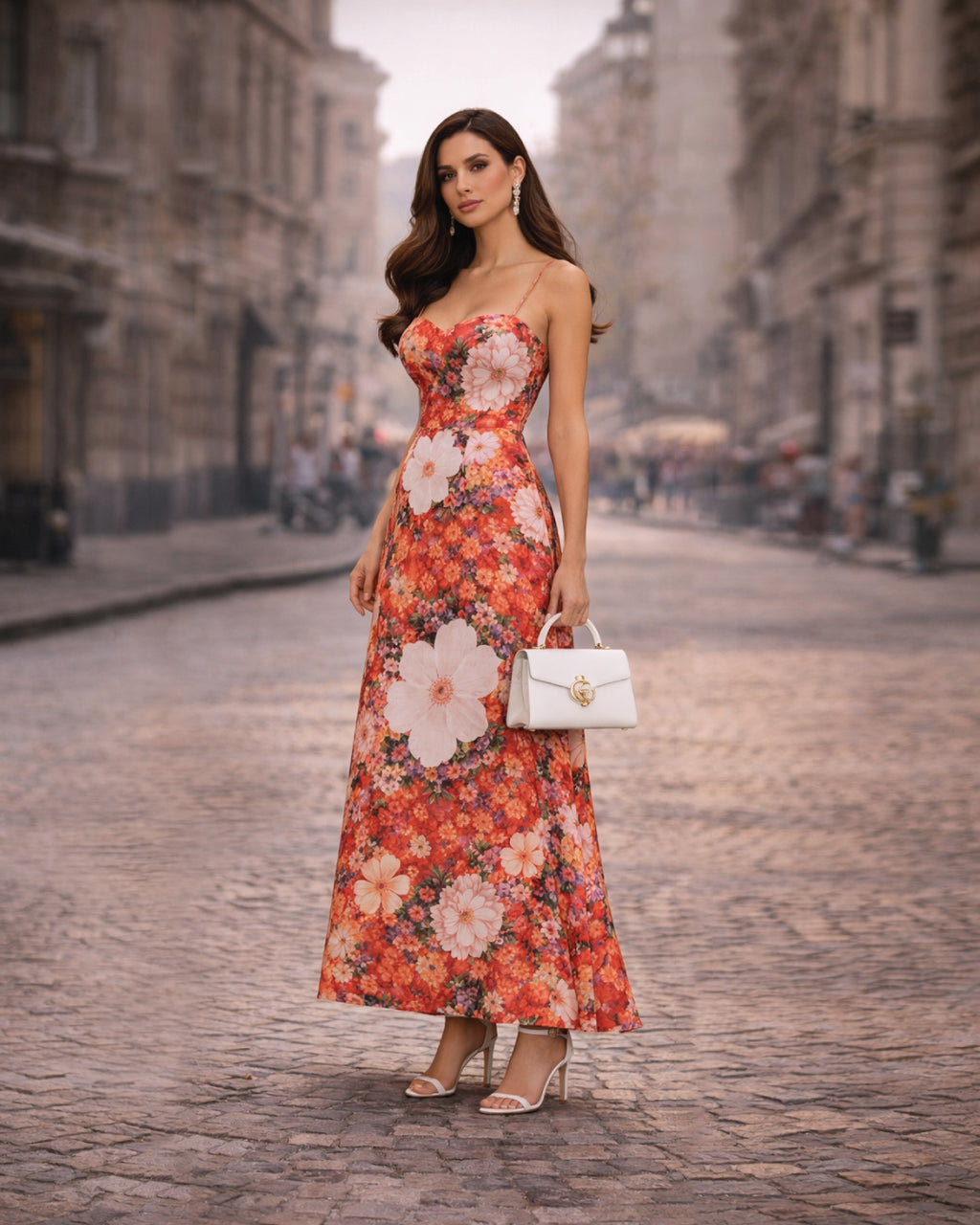 Italian Floral Spaghetti Strap Maxi Dress
